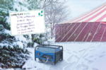 Ein Faltflyer mit Informationen des im Zirkus genutzten Generators. Angegeben ist unter anderem eine Internetadresse der Firma Kepau und Maßnahmen zum Schutz des Generators.