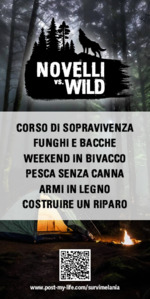 Si tratta di un volantino di Melania Novelli che mostra i corsi da lei offerti. Lei è un'appassionata ed esperta di sopravvivenza.