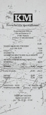 Ricevuta supermercato KM