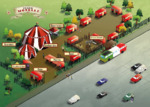 Le carovane del circo sono numerate e appartengono ai dipendenti del circo. Scoprite chi vive in quale carovana. A questo scopo vi aiutano il programma, le chat di WhatsApp e gli interrogatori. Posizionate o incollate gli autografi dei dipendenti del circo sui campi corretti delle relative carovane e prendete appunti.