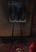 Il quadro è completamente bruciato. Sembra che qualcuno abbia posizionato tre candele dal pavimento direttamente sulla tela. Il commissario Gallo aveva inizialmente affermato che Diletta Campagnoli aveva solo acceso un cuore fatto di candele sul pavimento.