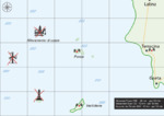 Sulla carta nautica sono contrassegnati tre possibili punti di incontro. Per prima cosa posizionate la mappa radar trasparente sulla posizione corretta della carta nautica (prestate attenzione al nome della stazione radar).